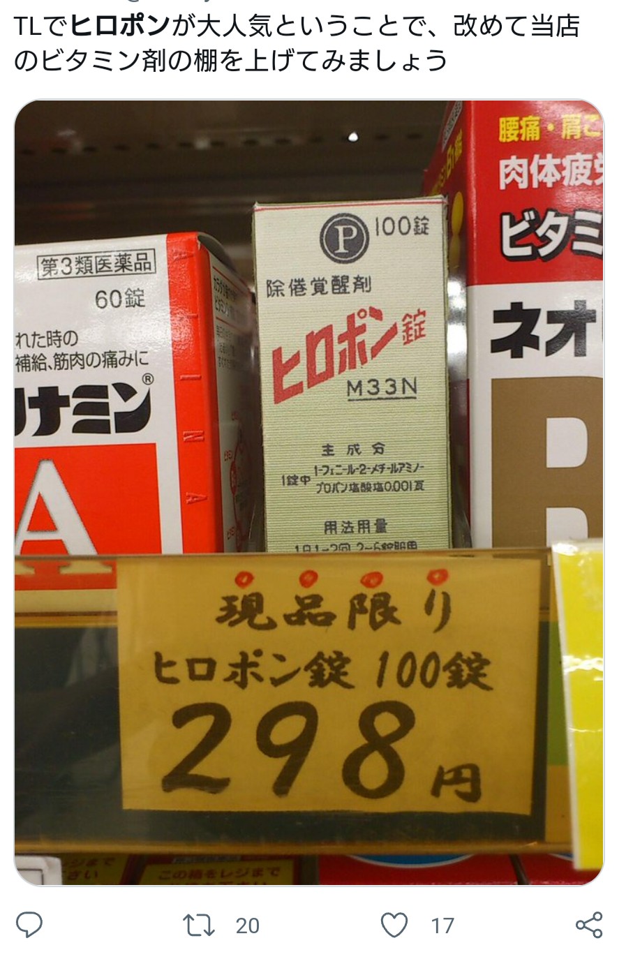 勤め先の薬屋の棚にヒロポンの空箱おいて遊んでるんや