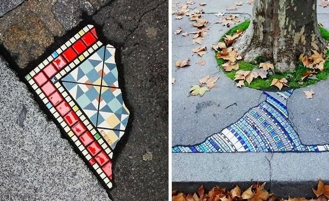 元々カラフル柄だったのをコンクリで補修したんだろ