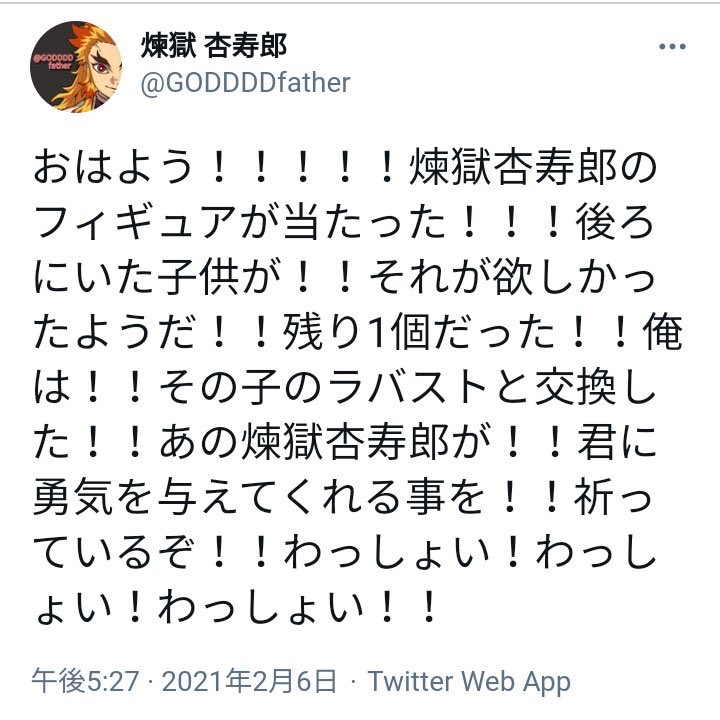 言うはずがないだろう!そんなことを!煉獄さんがぁ!