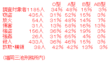 犯罪者の血液型(刑務所内)