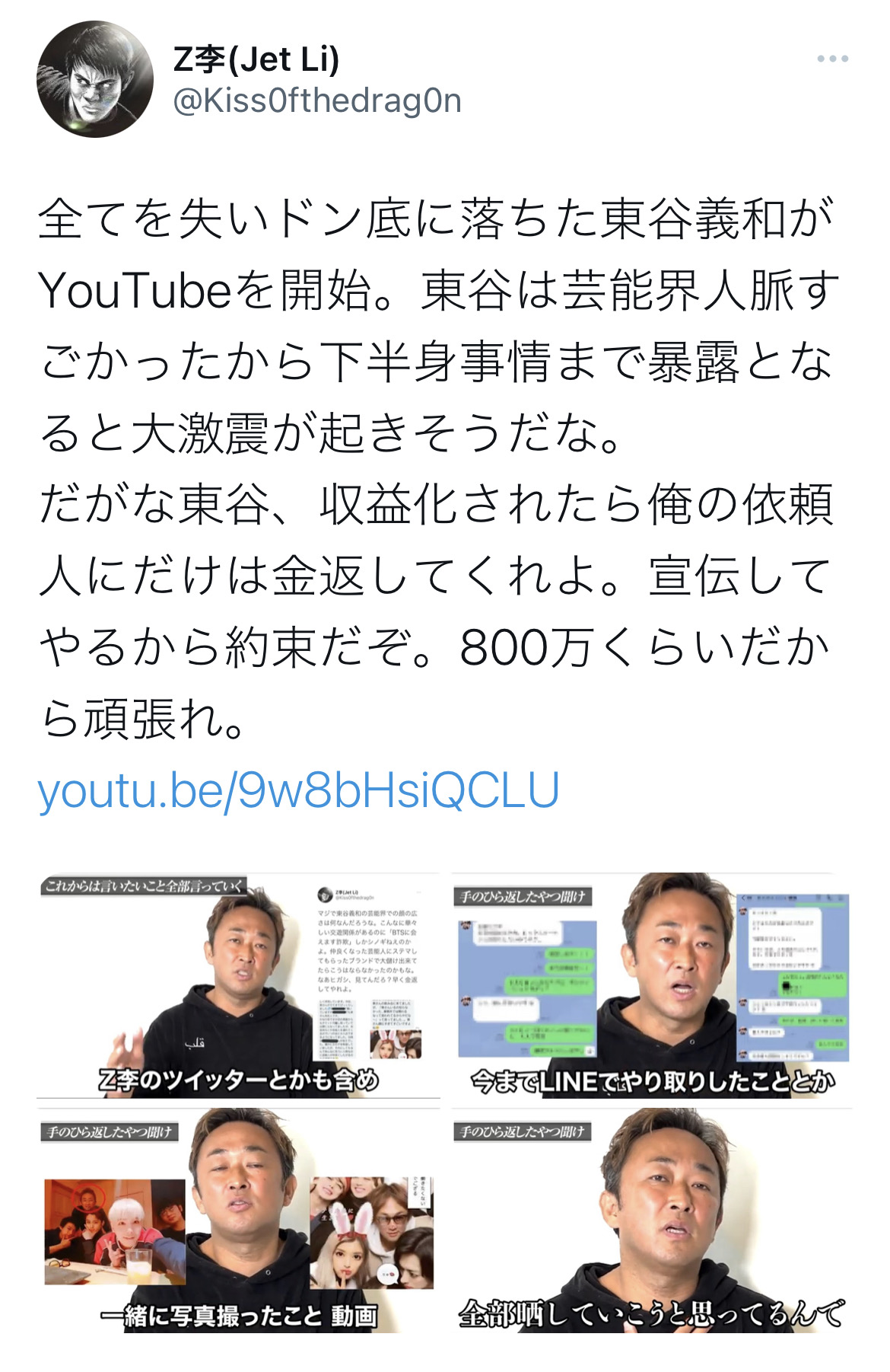 東谷のYouTubeの収益をZ李に助けを求めてた詐欺被害者に返済させるためZ李が拡散開始
