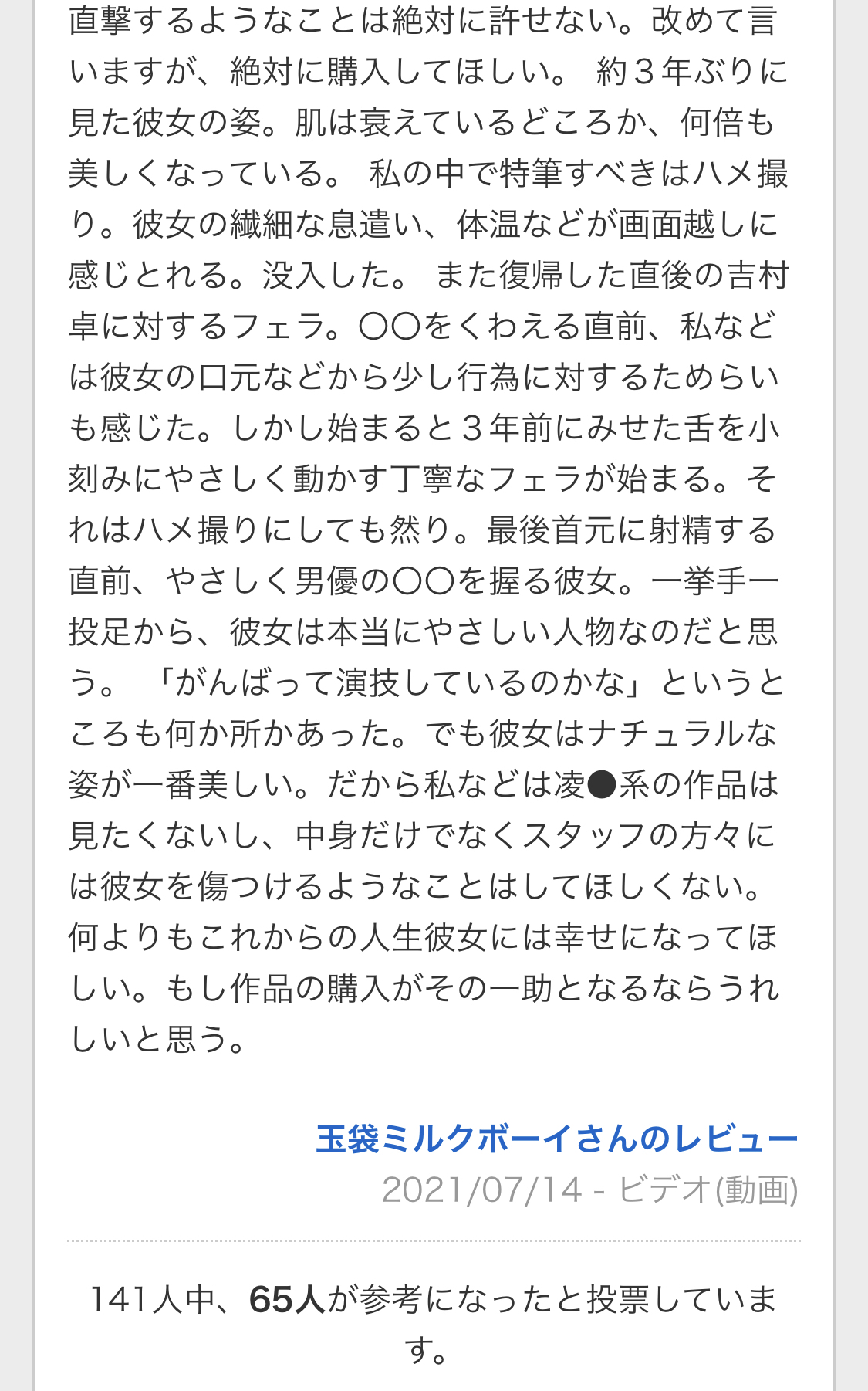 AVのレビューで真面目に長文書いてる奴参考にはなるけどクソキモいわ