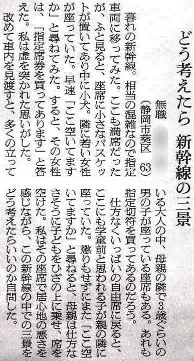 転載元:満席の新幹線指定席で他人の指定席に座ろうとしたお年寄りが断られるという事件が発生してしまう?
