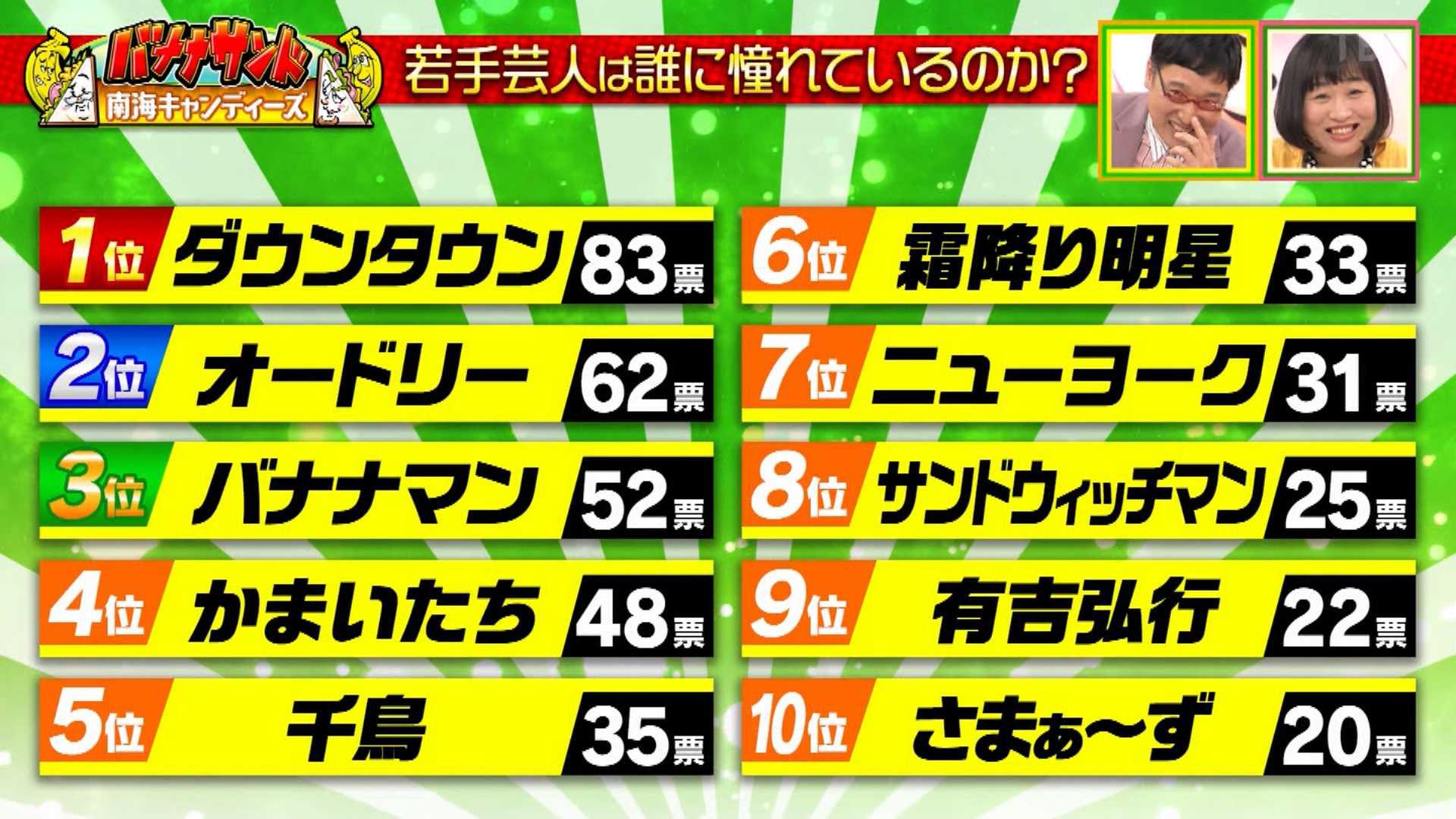若手が憧れてる芸人ランキングにかすってもないぞ
