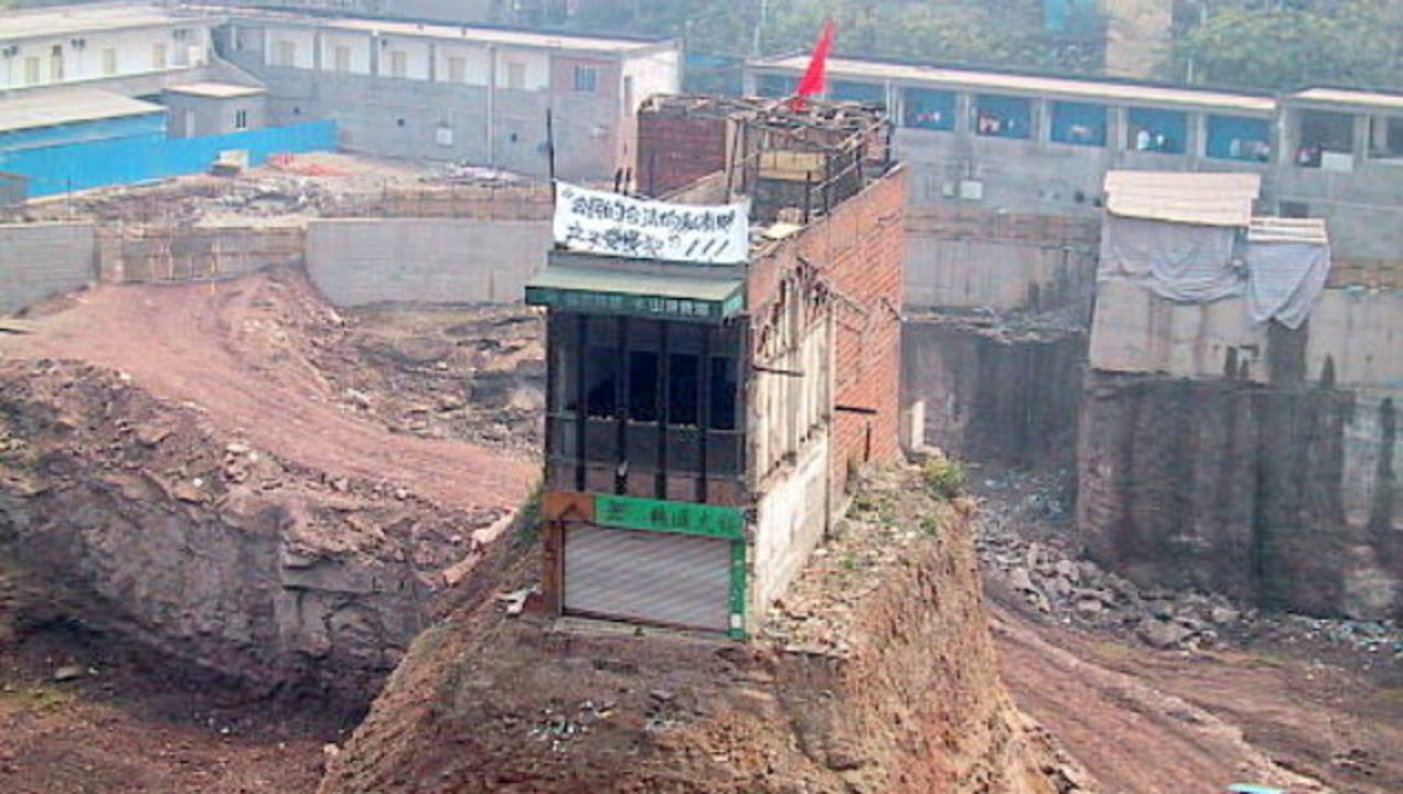 立ち退きを拒否し続けた女性、家の周りに巨大ショッピングモールが建つ
