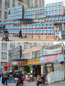 立ち退き拒否の住民、壁に習近平の写真を貼って抵抗