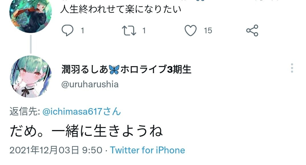 バチャ豚「人生終わらせたい」Vtuber「だめ。一緒に生きようね」