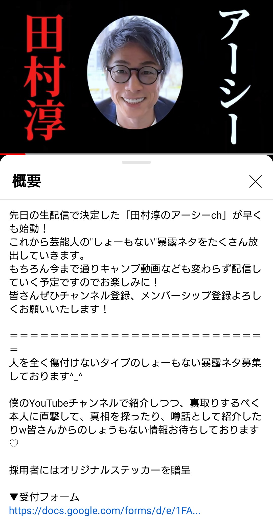 ・田村淳YouTubeチャンネル『田村淳TV』の名称を『アーシーch』に変更