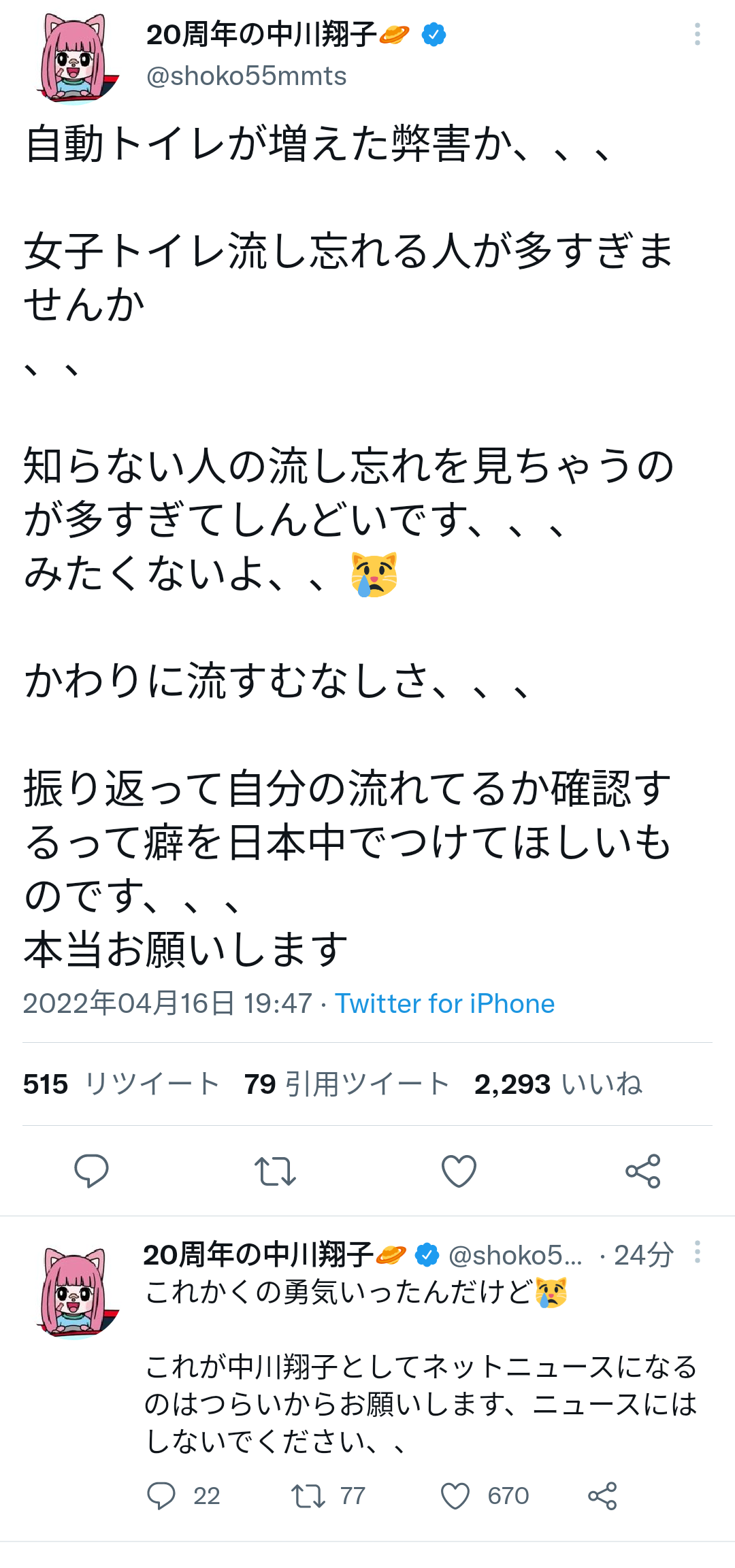 — 20周年の中川翔子🪐 (@shoko55mmts) April 16, 2022