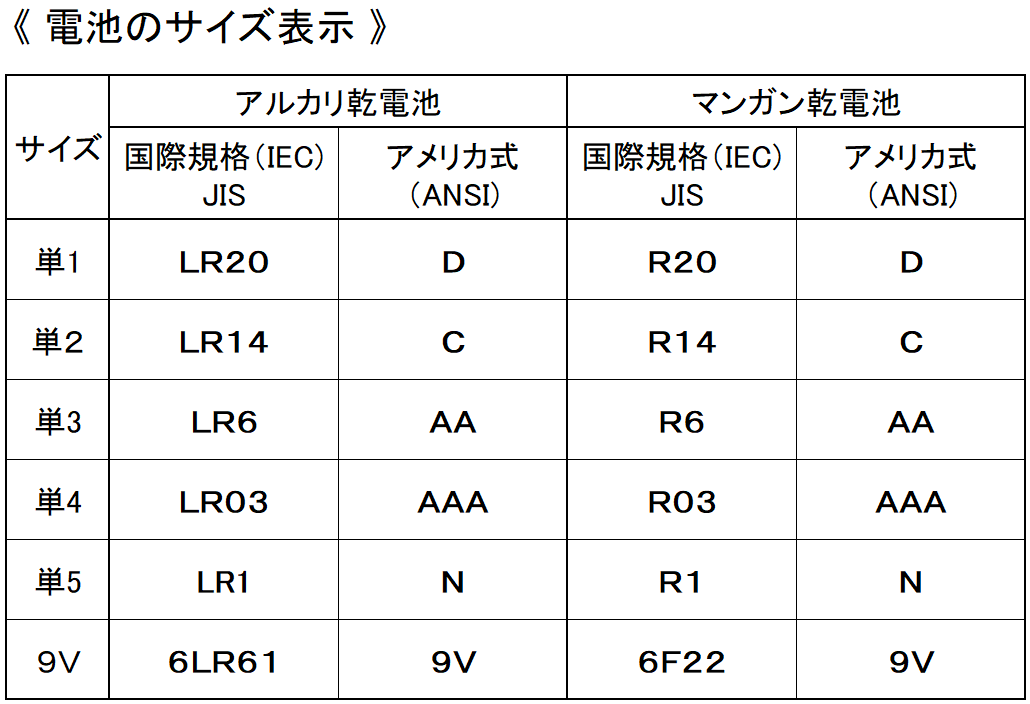 単三と単四は結構間違える