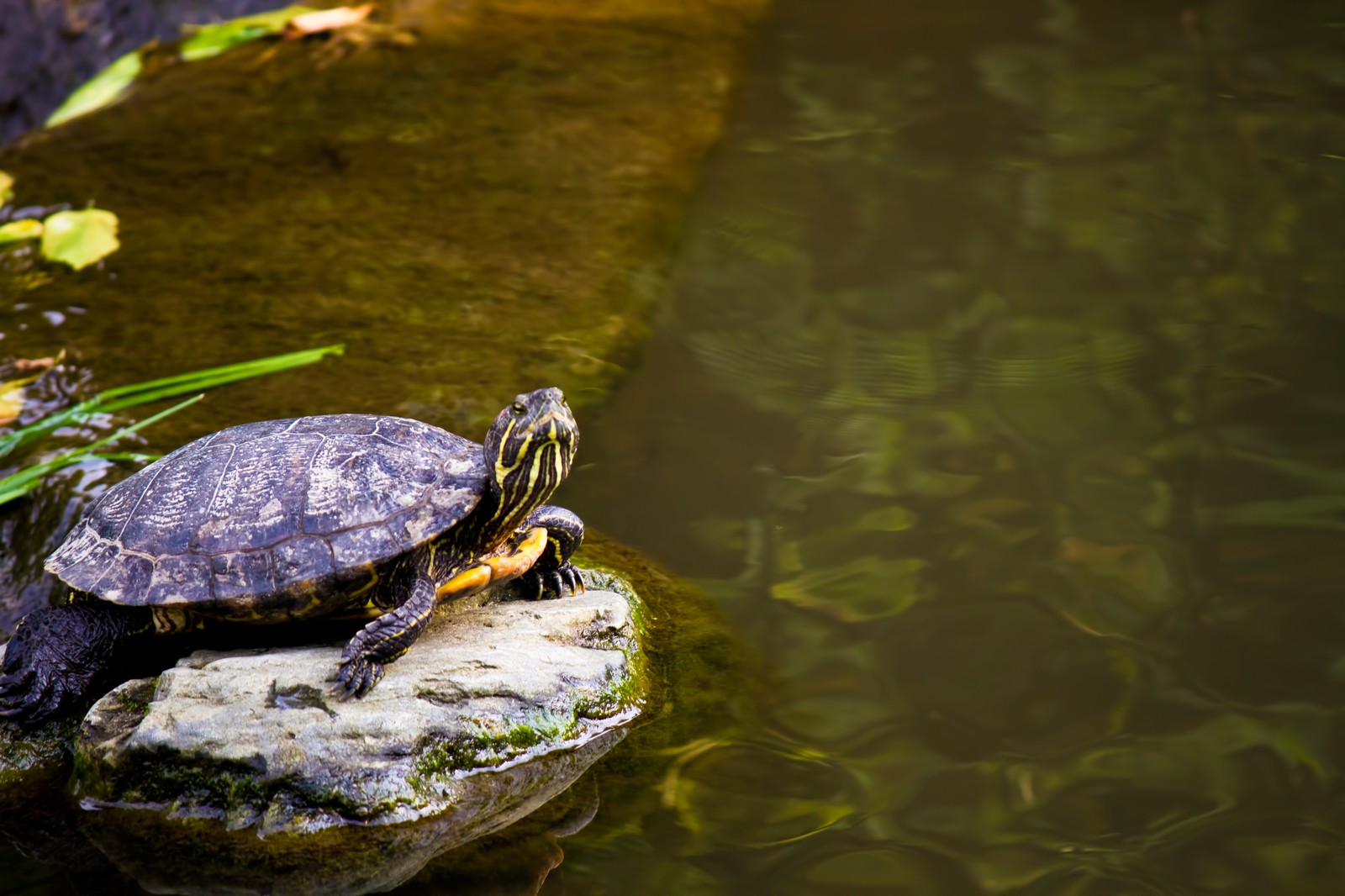 餌付けされたミドリガメは水パチャパチャしてたらすぐ集まってくるから
