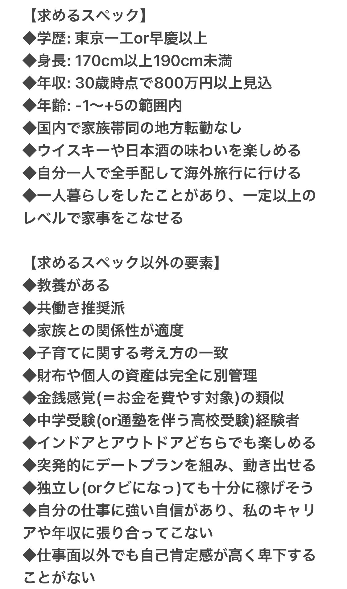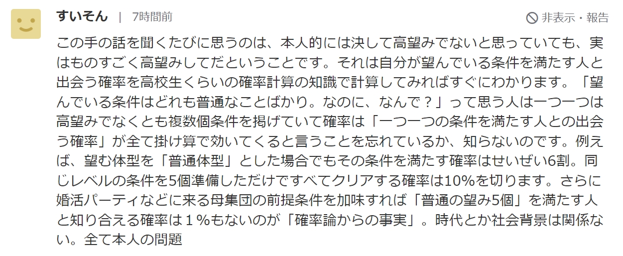 学歴と仕事は厳しいかもしれんが容姿と清潔感はこれくらい求めていいやろ