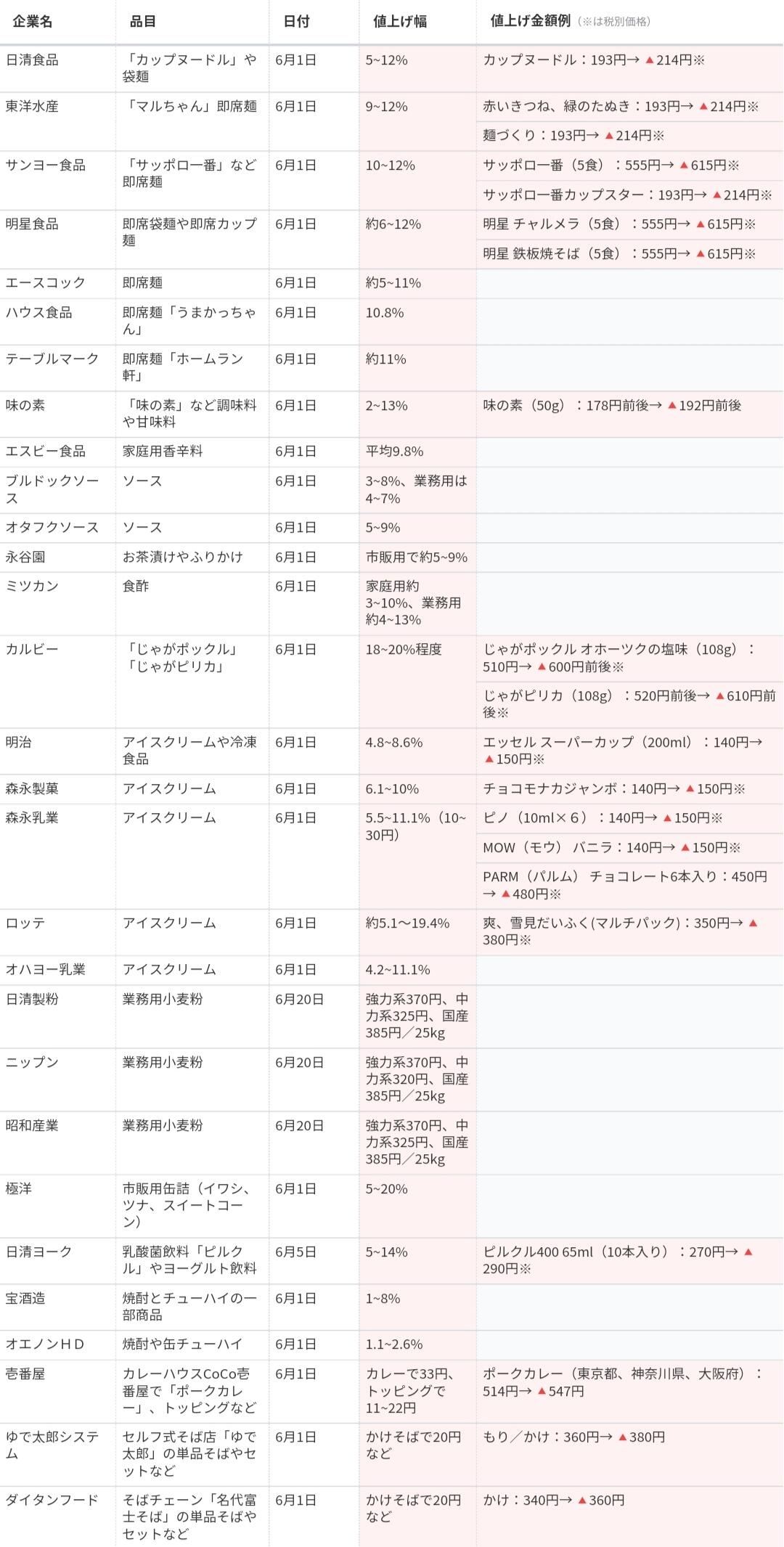 食品類も今日から値上げラッシュやぞ