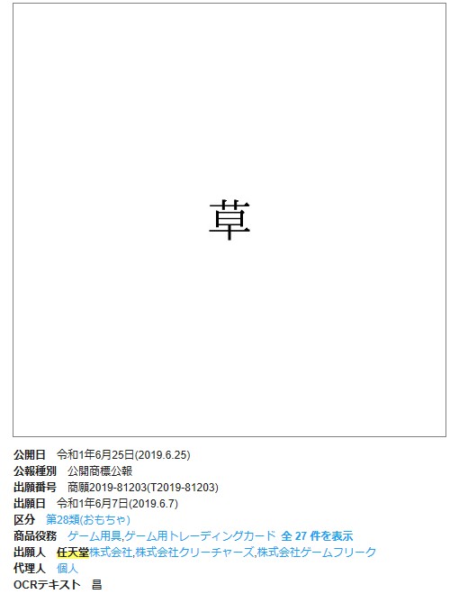 任天堂が「草」商標登録出願