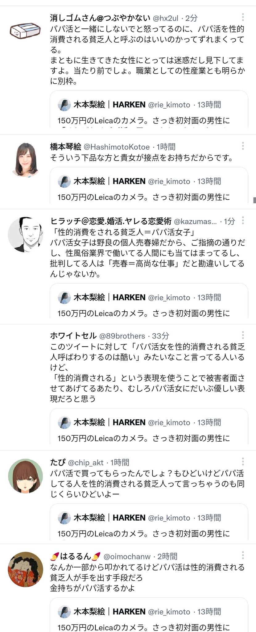 引用元: 女さん「ライカ買ったらパパ活って言われた。私は貧乏人じゃない」→パパ活女「!!!」シュバババ