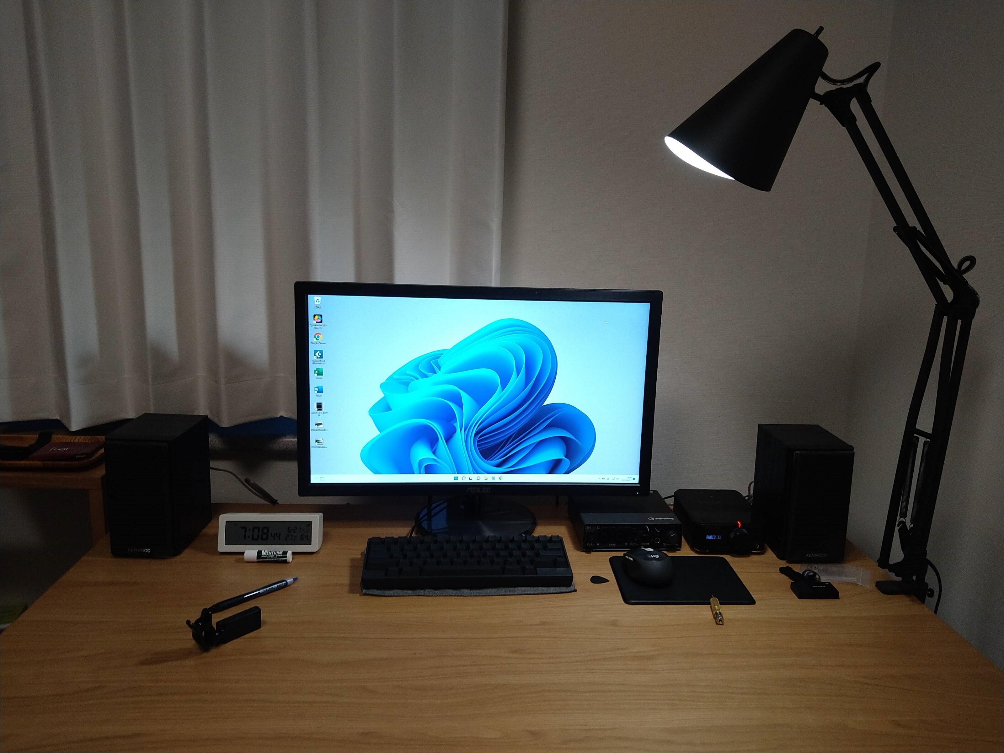 PC上に置くものは黒で統一しようと思ったけど時計だけマジでミスった