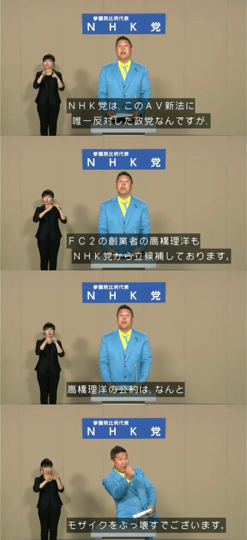 手話の人もNHK党なん?そうじゃなかったらかわいそうや