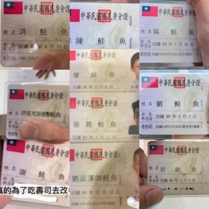 台湾では3回まで改名できる法律があるので名前を鮭に変える人が殺到してスシローが台湾政府に怒られる