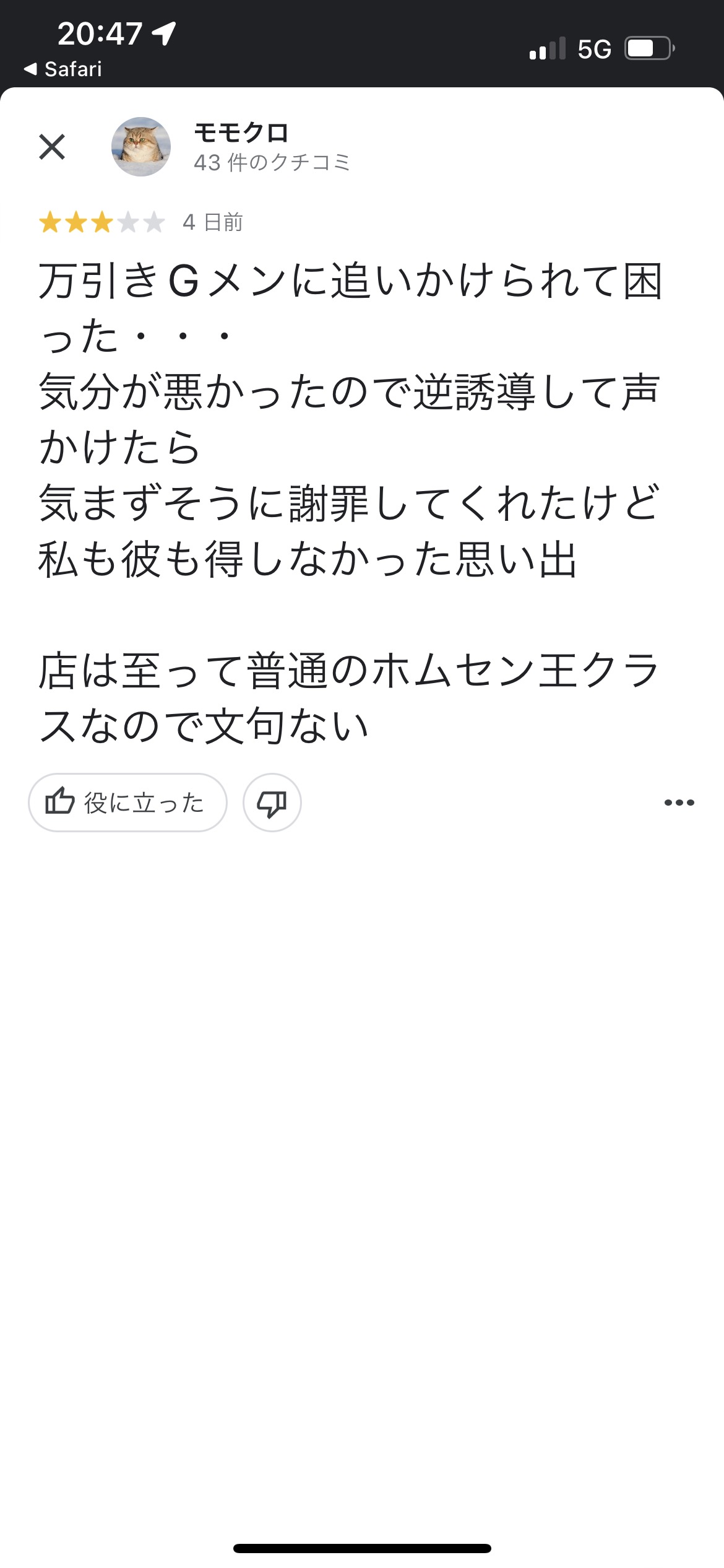 グーグルの口コミって文句言う奴はほとんどの場所で文句書いてるからまあクレーマーなんだろうなと思ってる