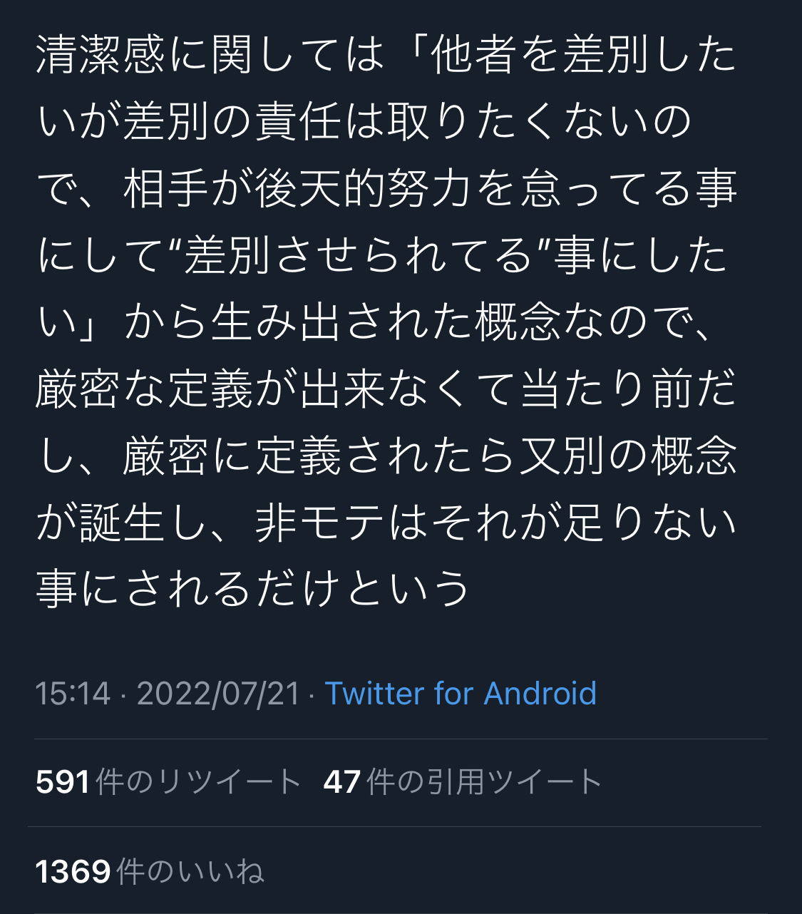 結局顔ですって言ったら終わるから清潔感なんて言葉が生まれたんやで