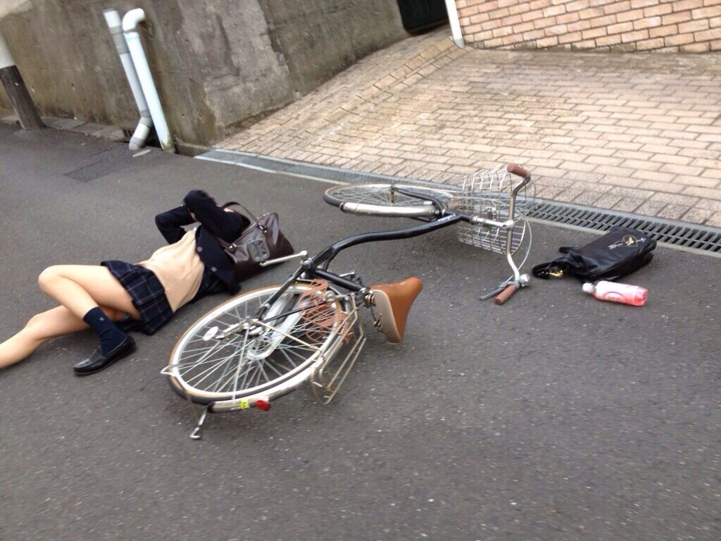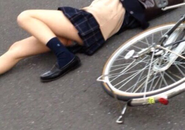 ミニスカJKさん、自転車で転倒しパンツが丸見えになってしまう【他106枚】