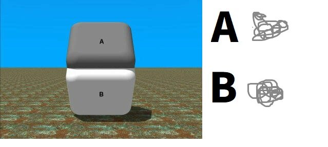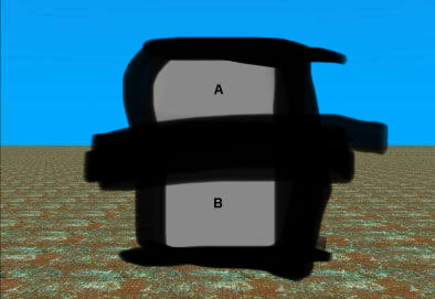 Aが黒系でBが影のついた白、境目は画像の中心x軸