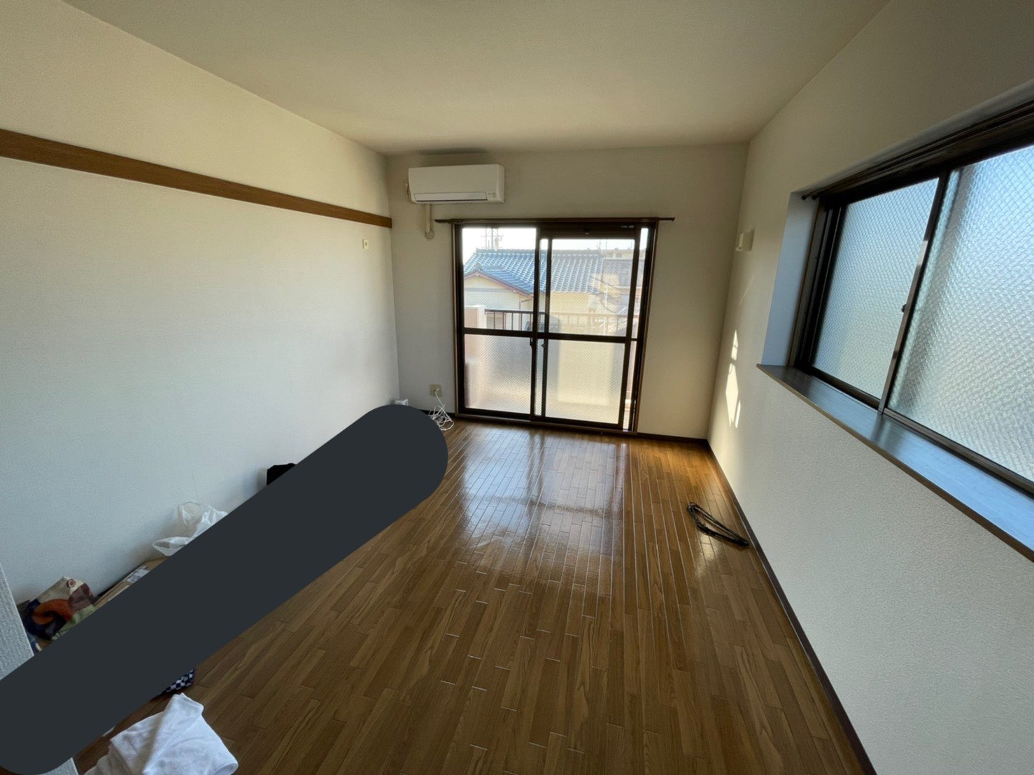 カーテンとエアコン見ればわかるが典型的ボロアパートのワンルーム