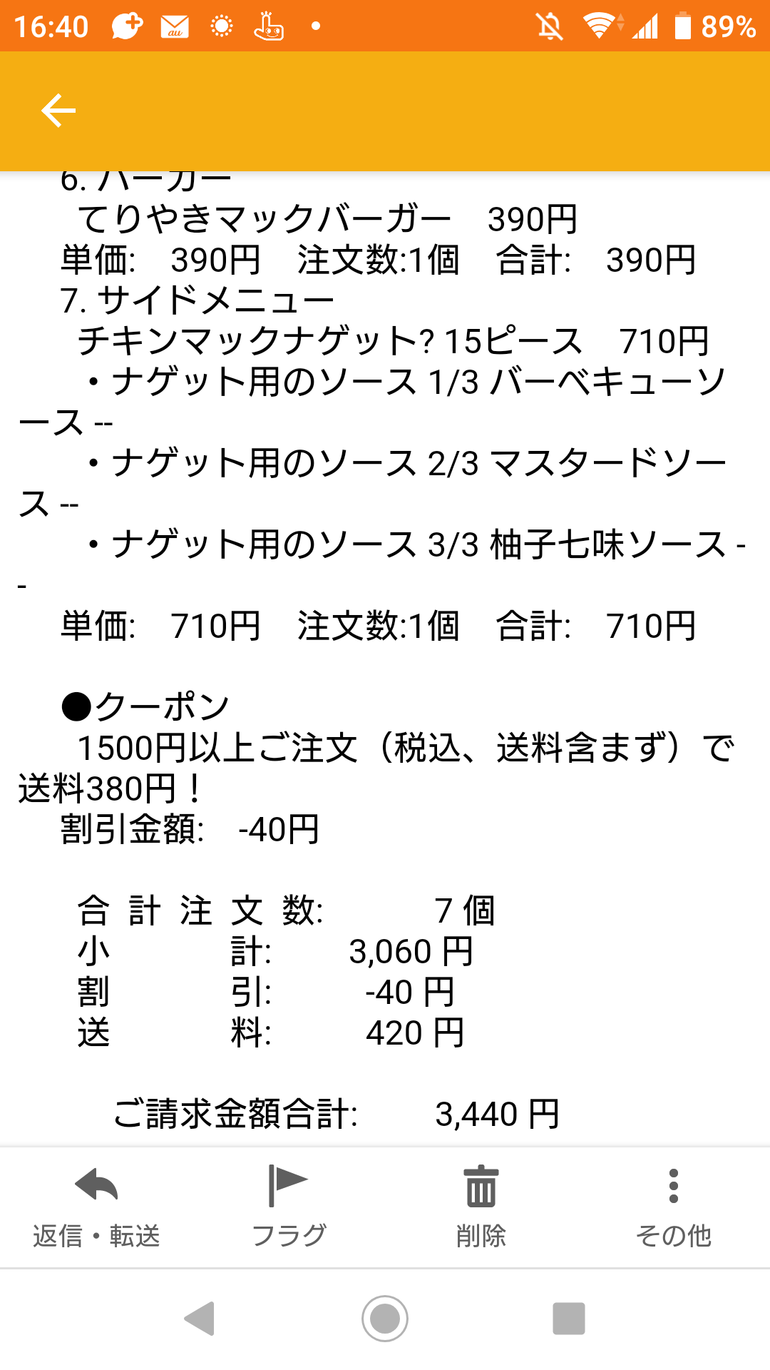 テイクアウトの包装紙と作業人件費が146円