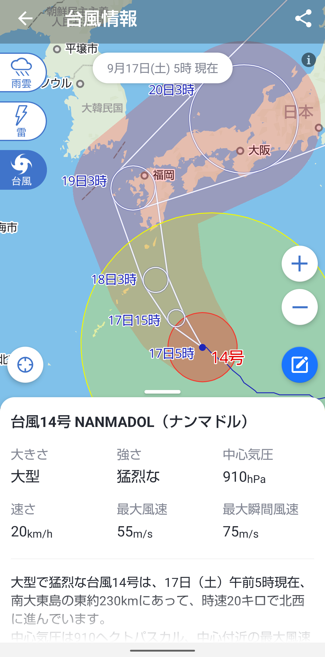 転載元:【警告】台風14号さん、えげつない強さに発達