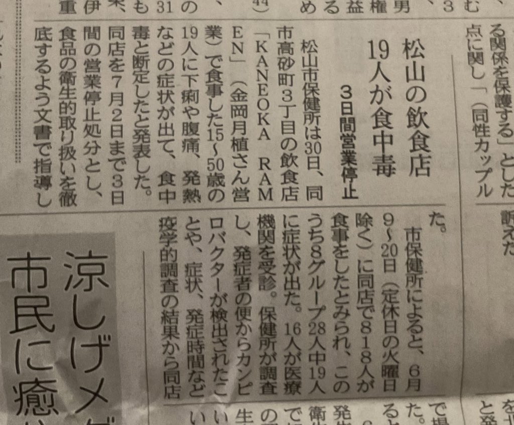 ワイもアニサキスに引っかかったことあったけどあの頃は営業停止に追い込むほど心が貧しくなかったわ