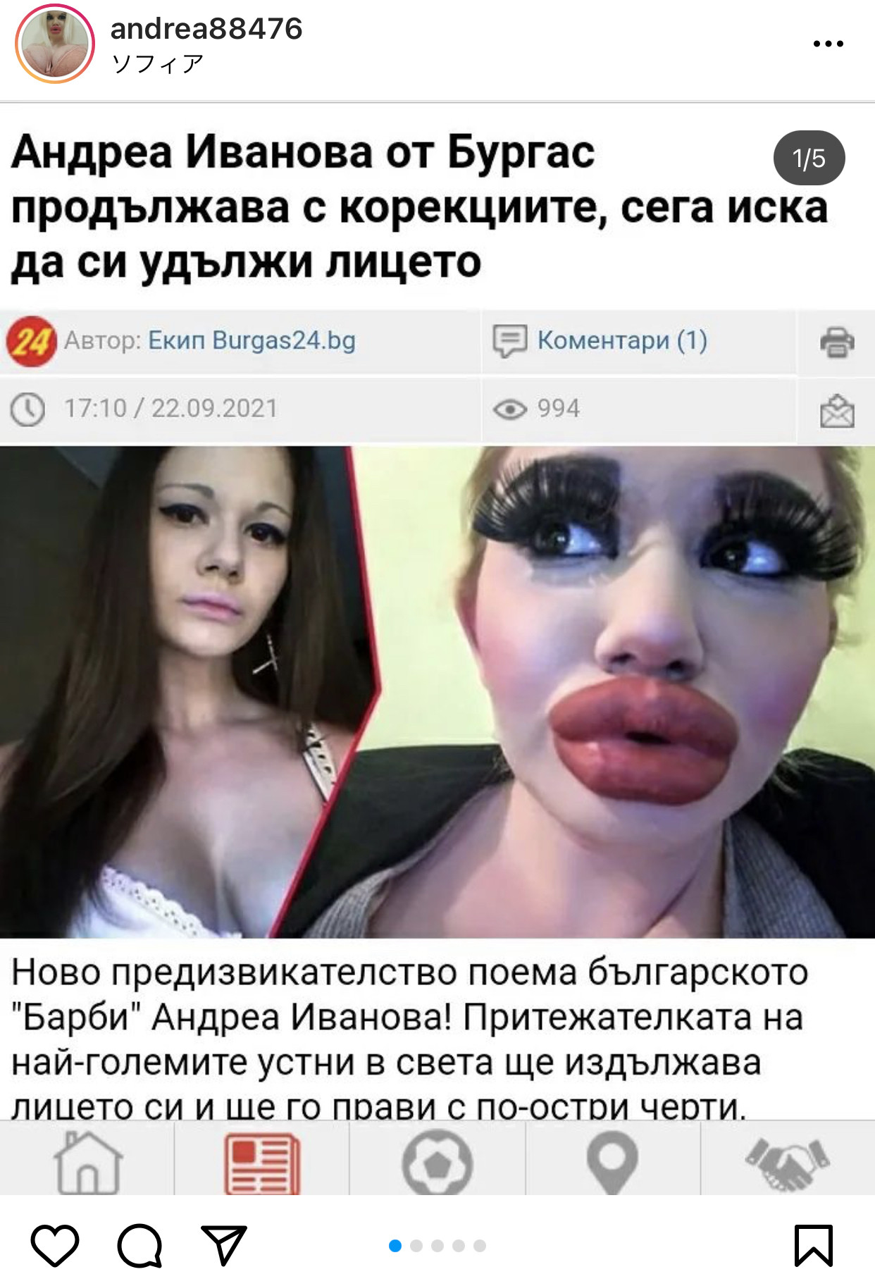 “世界一大きな唇”持つ女性インフルエンサー、27度目のヒアルロン酸注入を宣言