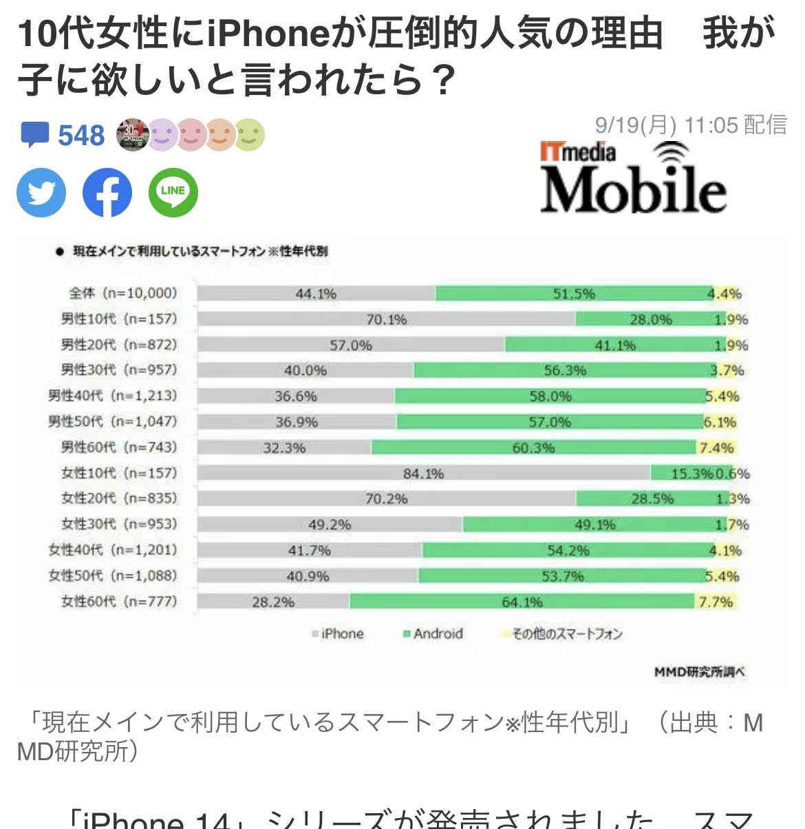 10代女子はiPhone率高いのな