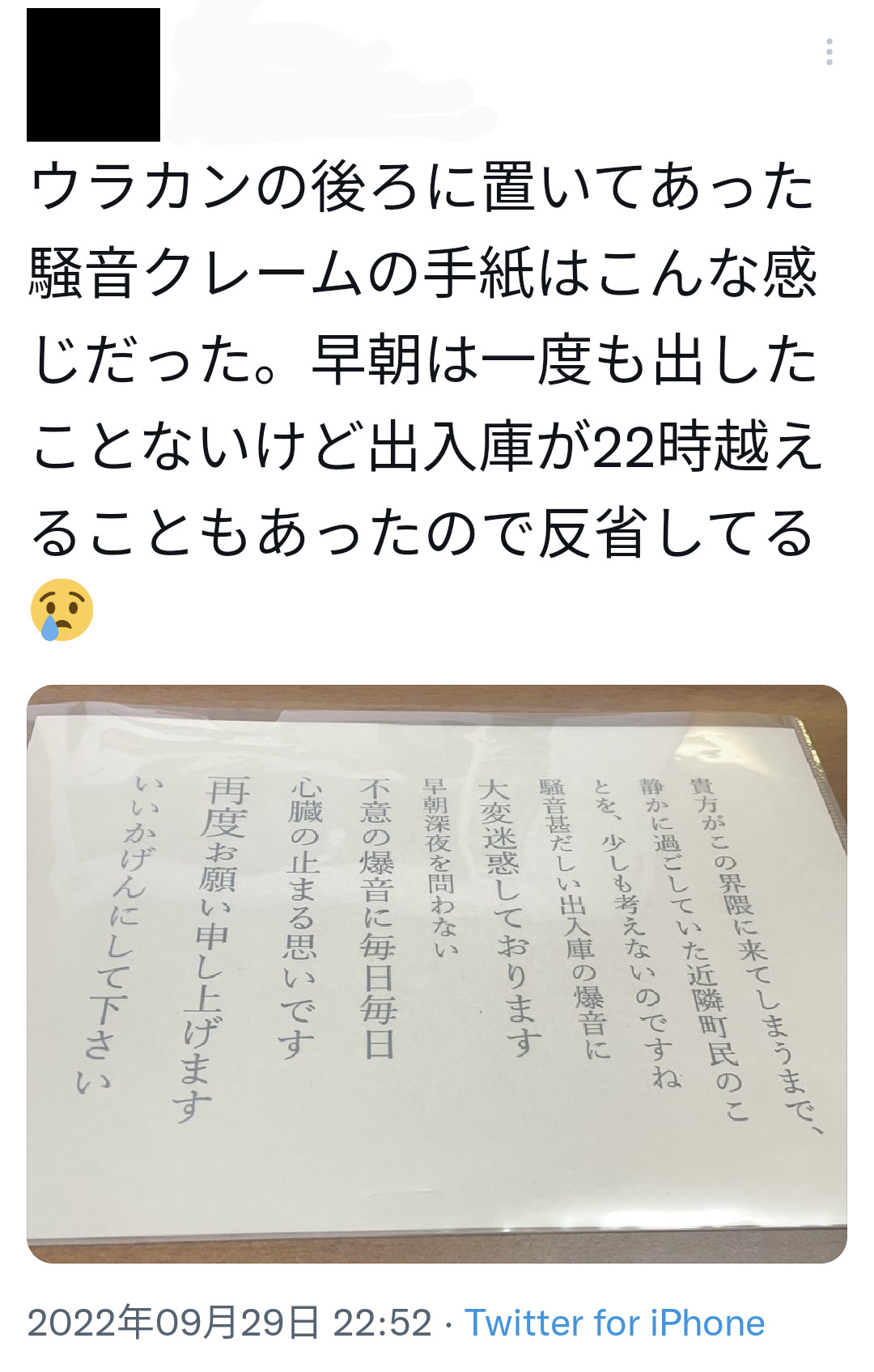 22時でクレームくるほど凄いんか高級車って