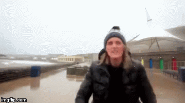 NBCニュースはマジでこの女性レポーターを現場によこし、コンドームを被せたマイクを顔の前に持たせた。
