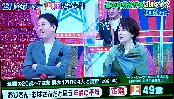 最近クイズ番組で見たけどおじさんおばさんは48歳以上って思ってる人多いらしいぞ