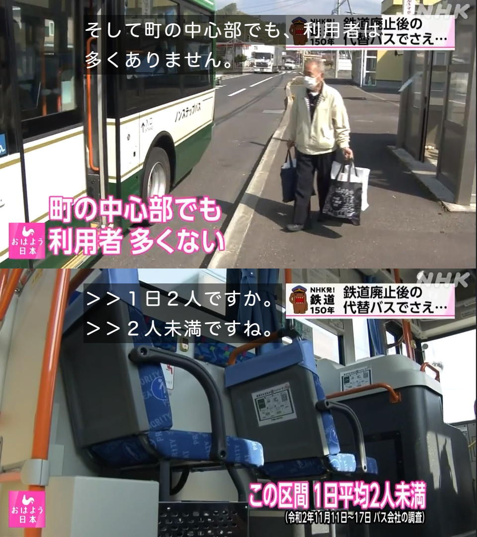 バスですら利用者がいないのなら鉄道廃止なんて当たり前やな