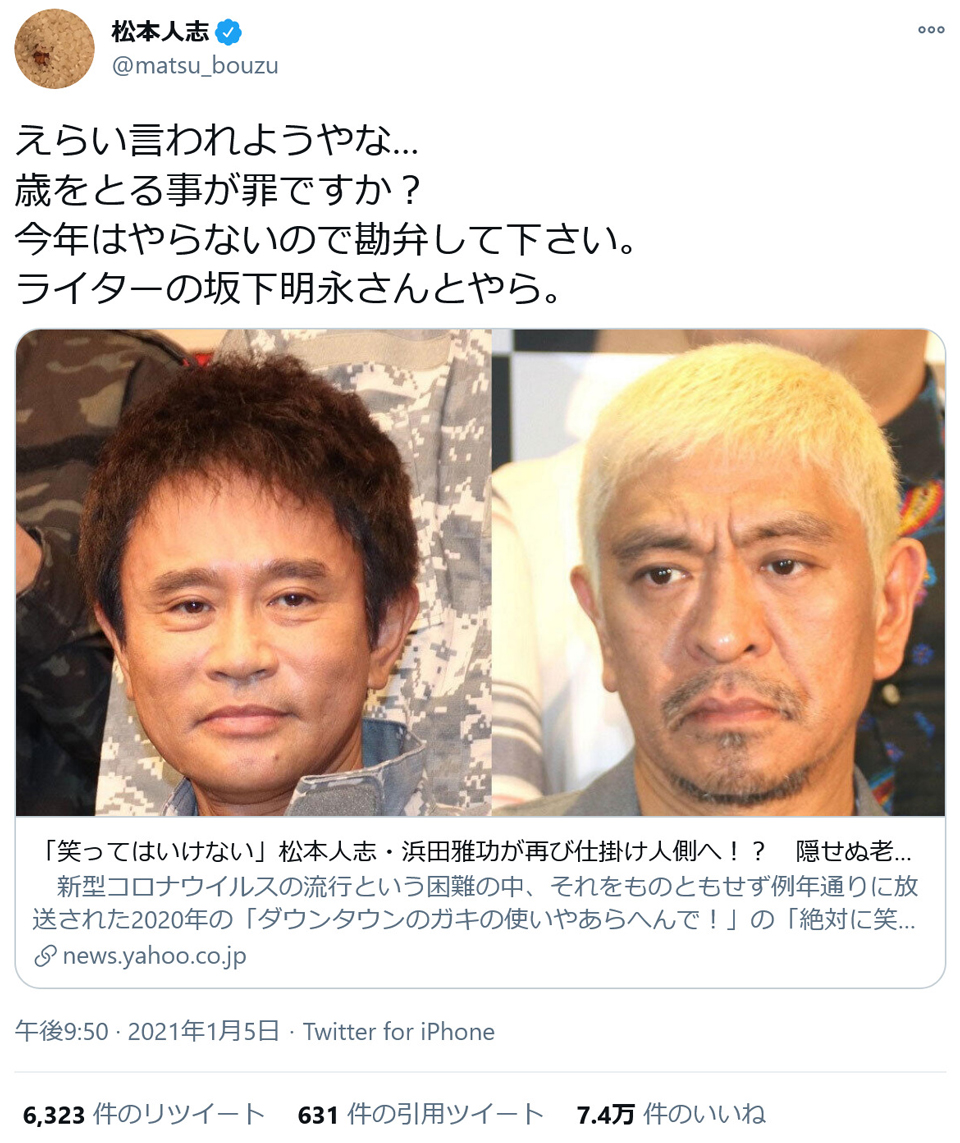 松本が黒髪坊主だった頃だっけ