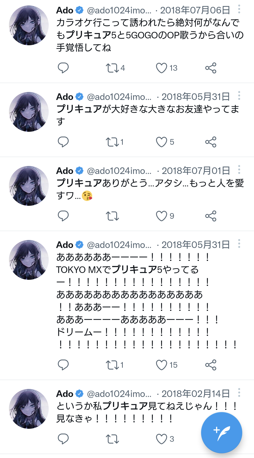 20歳の20時にプリキュアあげるんやし相当好きなんやろなと思ってTwitter検索したら愛で溢れとったわ
