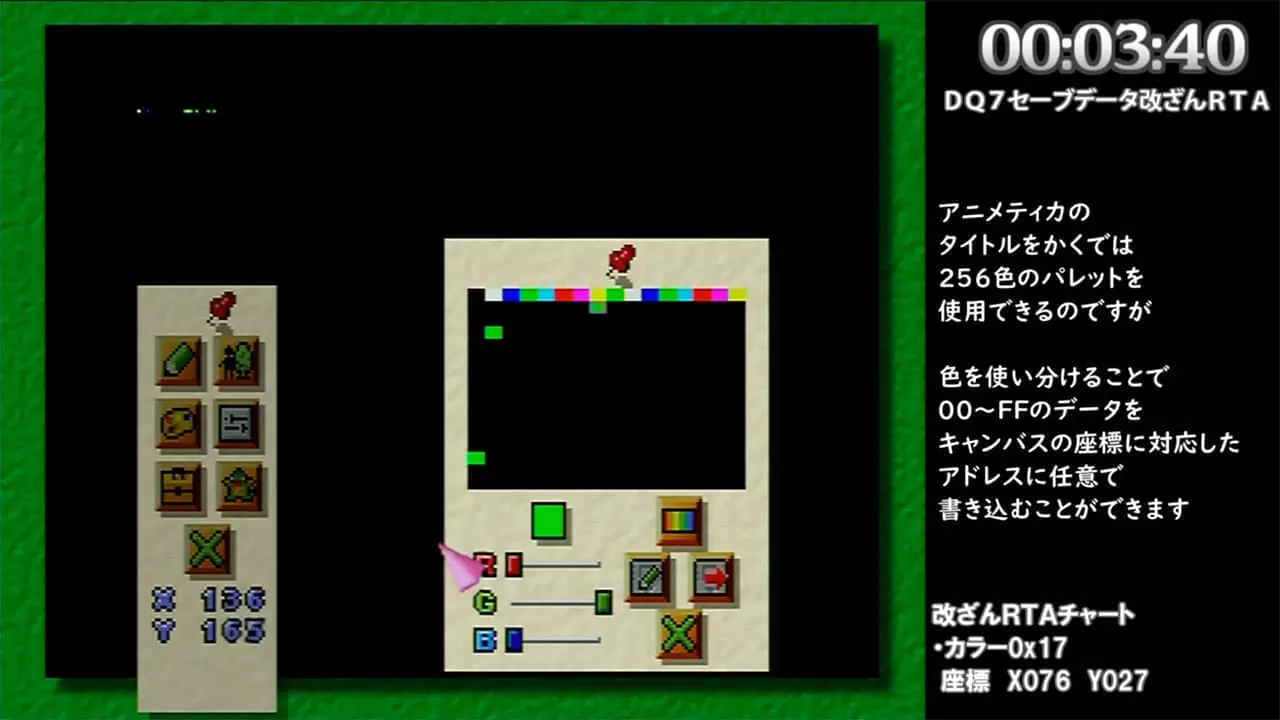 RPGツクールのアニメティカで打ったドットがセーブデータのバイナリエディタになって4分ぐらいで終わるやつ