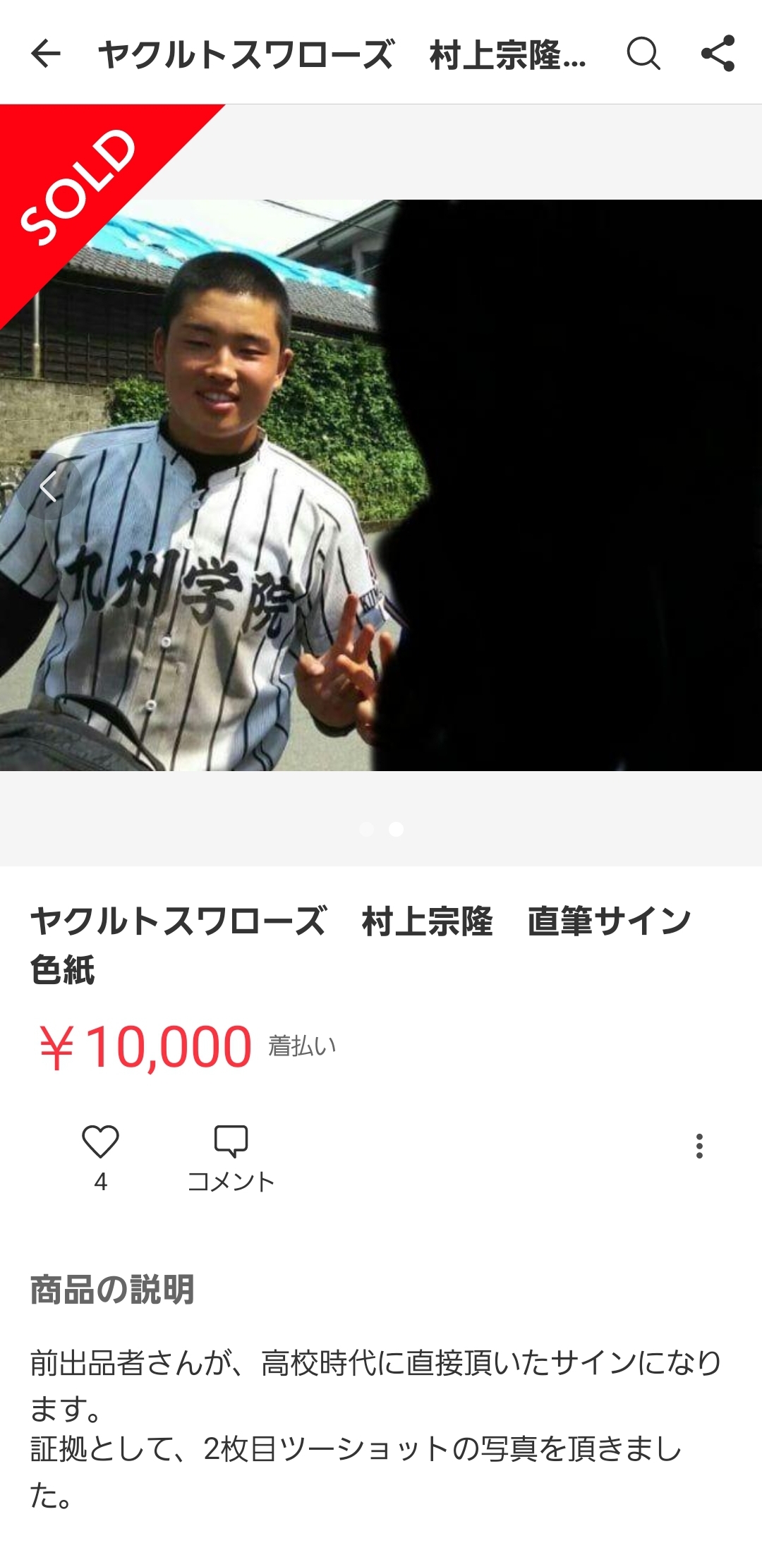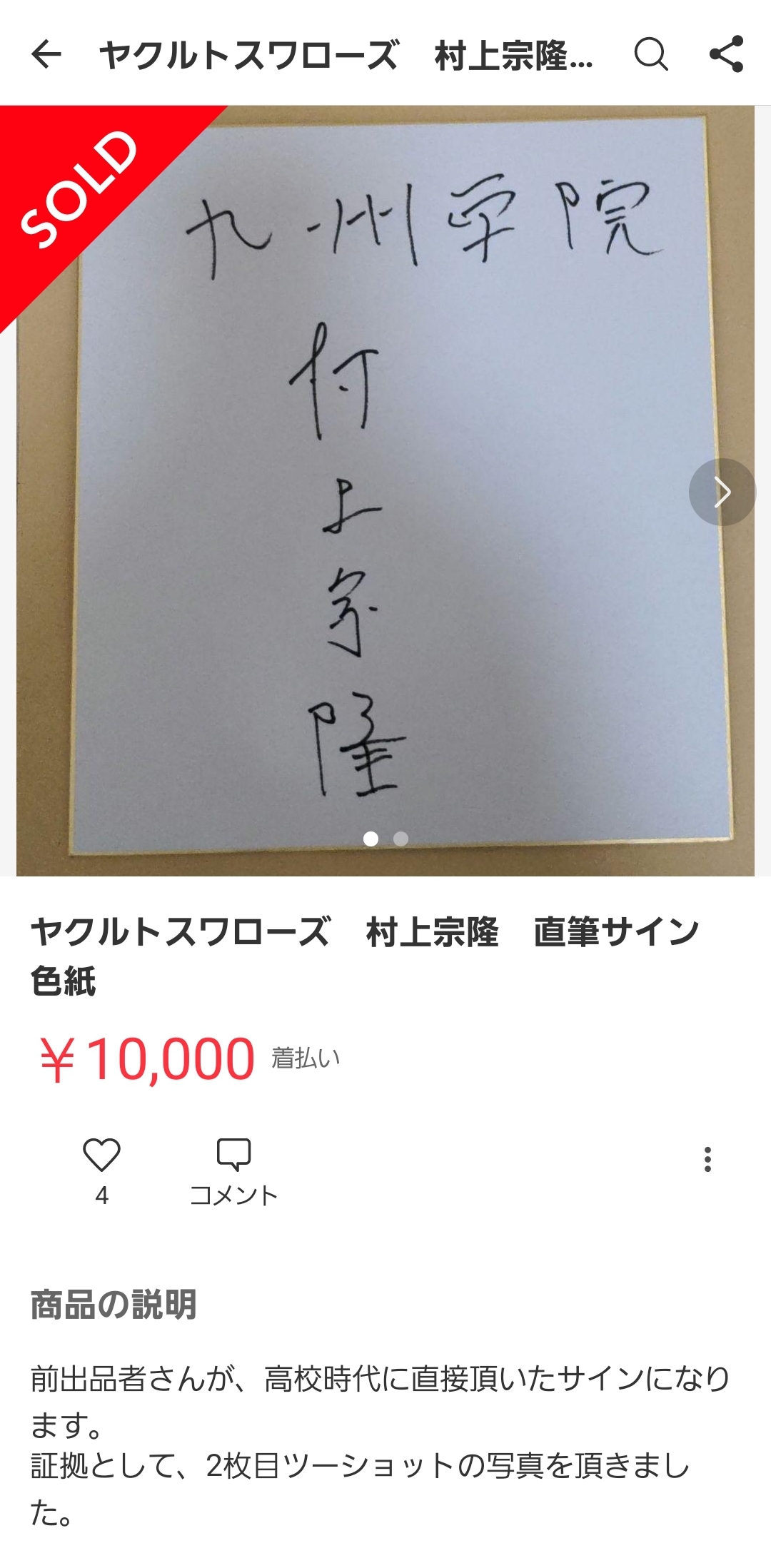 村上のサインをめちゃくちゃ安価で何枚も出品してる模様