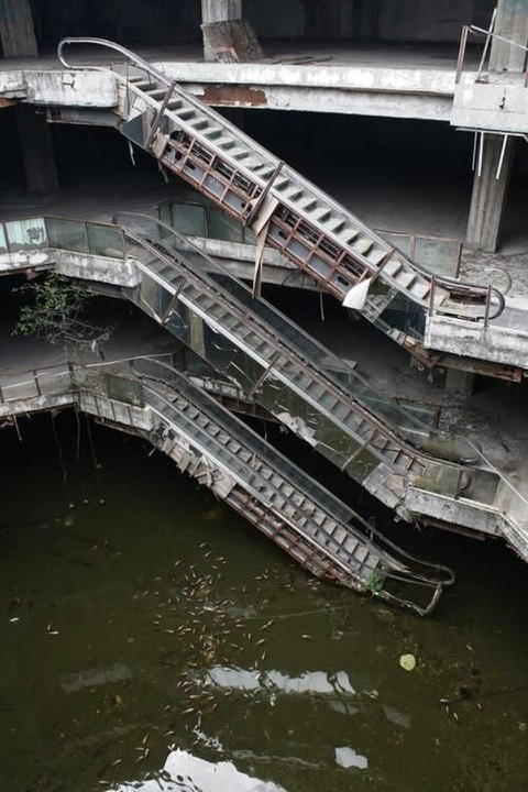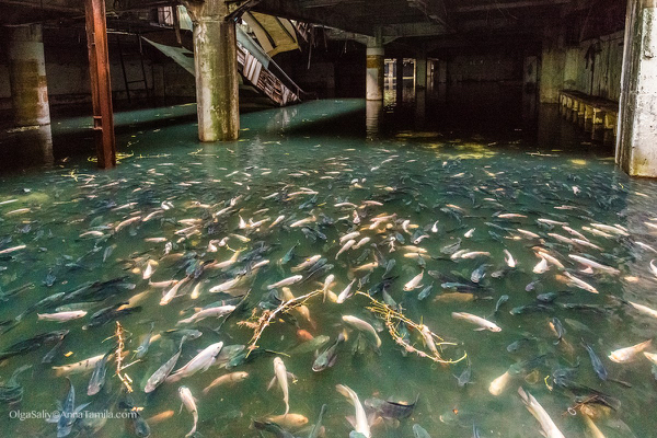 バンコクのショッピングモール廃墟に飼われた鯉